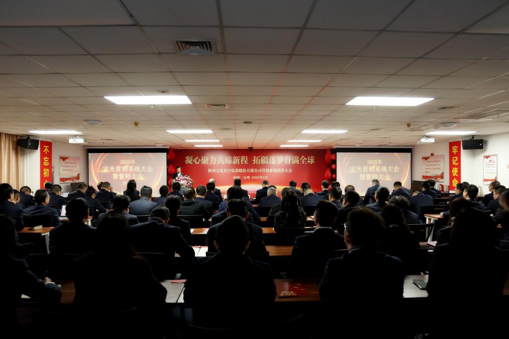 會(huì)議宣讀了2024營銷系統(tǒng)受表彰先進(jìn)個(gè)人名單,對獲獎(jiǎng)?wù)弑硎咀YR,勉勵(lì)全體銷售人員以獲獎(jiǎng)?wù)邽榘駱樱^續(xù)發(fā)揚(yáng)敢打敢拼的精神,勇于開拓新市場、攀登新高峰,為公司創(chuàng)造更輝煌的明天。先進(jìn)個(gè)人代表作交流發(fā)言,并分享了工作經(jīng)驗(yàn)。誓師大會(huì)環(huán)節(jié),各營銷業(yè)務(wù)單位負(fù)責(zé)人以洪亮、堅(jiān)定的聲音喊出了“2025蛇我其誰”誓言,表達(dá)了對完成2025年度銷售目標(biāo)的堅(jiān)定決心和必勝信念。征程漫漫風(fēng)正揚(yáng),千鈞重任再出發(fā)。寶光股份營銷系統(tǒng)全體人員將以時(shí)不我待、奮勇爭先的拼搏勁頭,以搶開局、拉滿弓的奮進(jìn)姿態(tài),用實(shí)際行動(dòng)踐行會(huì)議精神,錨定目標(biāo),勇毅前行,為寶光股份高質(zhì)量發(fā)展再立新功。