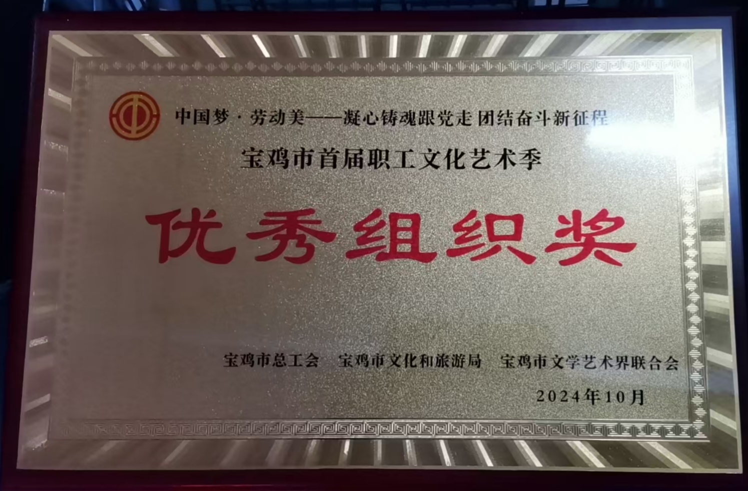 這些優(yōu)異的成績不僅是職工們個人才華的展示,更是寶光集團長期以來注重企業(yè)文化建設,關心職工精神文化生活的成果體現(xiàn)。通過參與此次職工文化藝術季,展現(xiàn)了寶光集團良好社會形象,豐富了職工們的業(yè)余生活,增強了團隊凝聚力,促進了公司和諧發(fā)展。近日,由寶雞市總工會、市文旅局、市文聯(lián)聯(lián)合主辦的“中國夢·勞動美—凝心鑄魂跟黨走 團結奮斗新征程”首屆職工文化藝術季歷時五個月圓滿落幕。寶光集團廣大職工憑借著出色的才華和不懈的努力,在眾多參賽隊伍中脫穎而出,喜獲三個獎項。