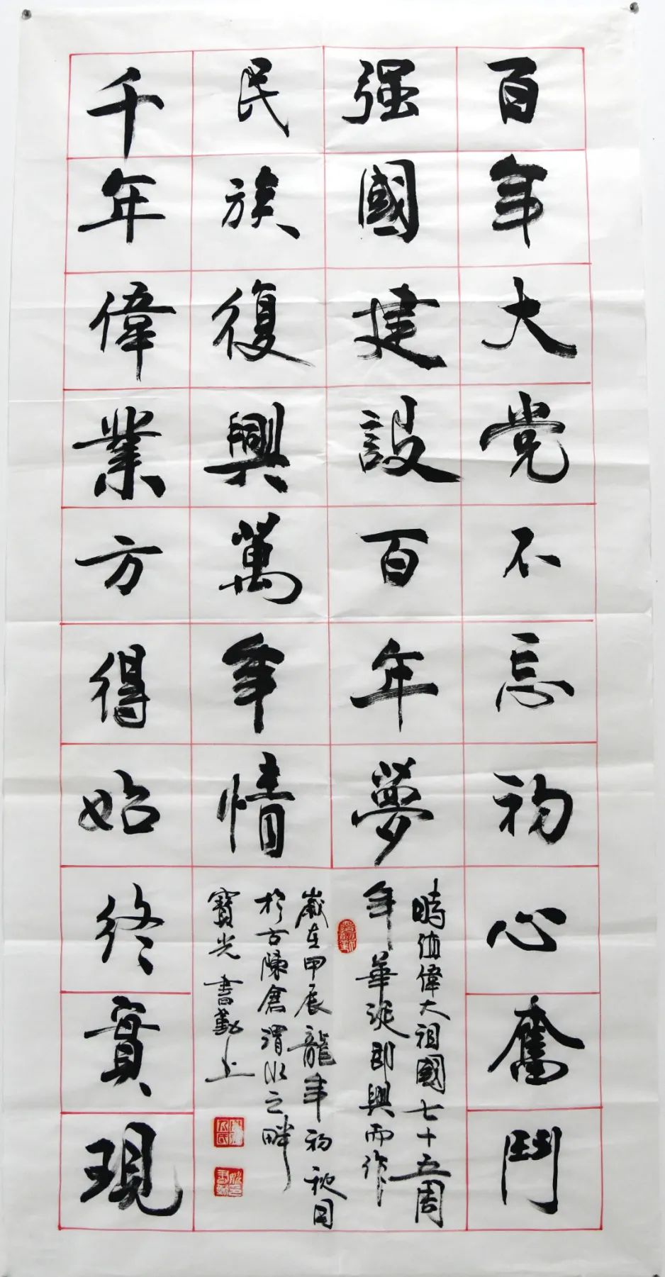 書(shū)法類(lèi)二等獎(jiǎng):《迎國(guó)慶 頌黨恩》寶光集團(tuán) 姚書(shū)勤