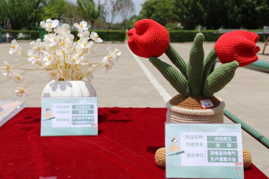 現(xiàn)場擺放了各式各樣的女職工手工作品,仿佛進入了一個五彩斑斕的藝術(shù)世界,每一件作品都散發(fā)著獨特的魅力,讓人目不暇接。職工們紛紛駐足欣賞,不時發(fā)出陣陣贊嘆聲。這些手工作品不僅展示了女職工們的才藝和創(chuàng)造力,也傳遞了她們對生活的熱愛和追求。